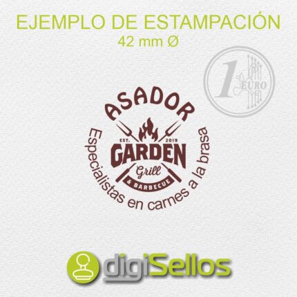 - Tamaño de impresión: 42 mm de diámetro. Hasta 6-7 líneas de texto + logo (Opcional).