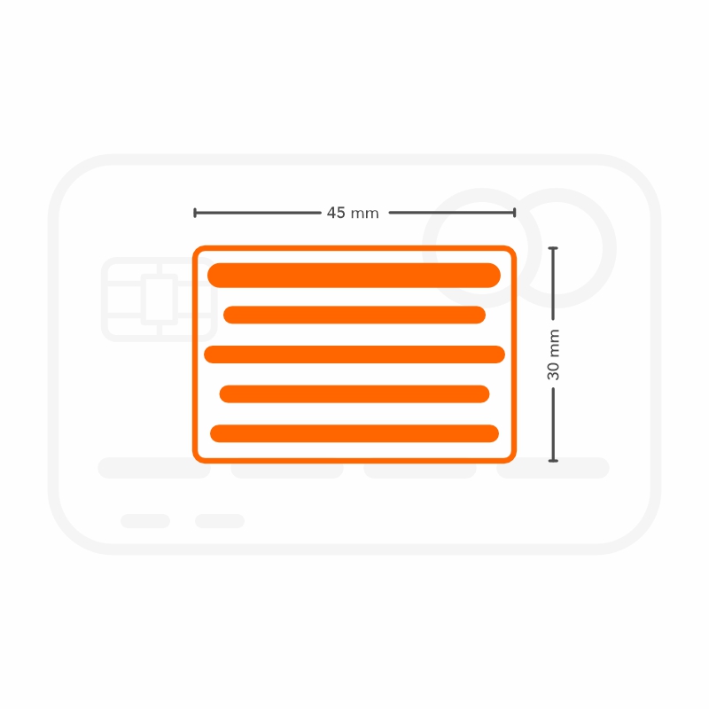 - Tamaño de impresión: 45×30 mm. Hasta 4-5 líneas de texto o logo.