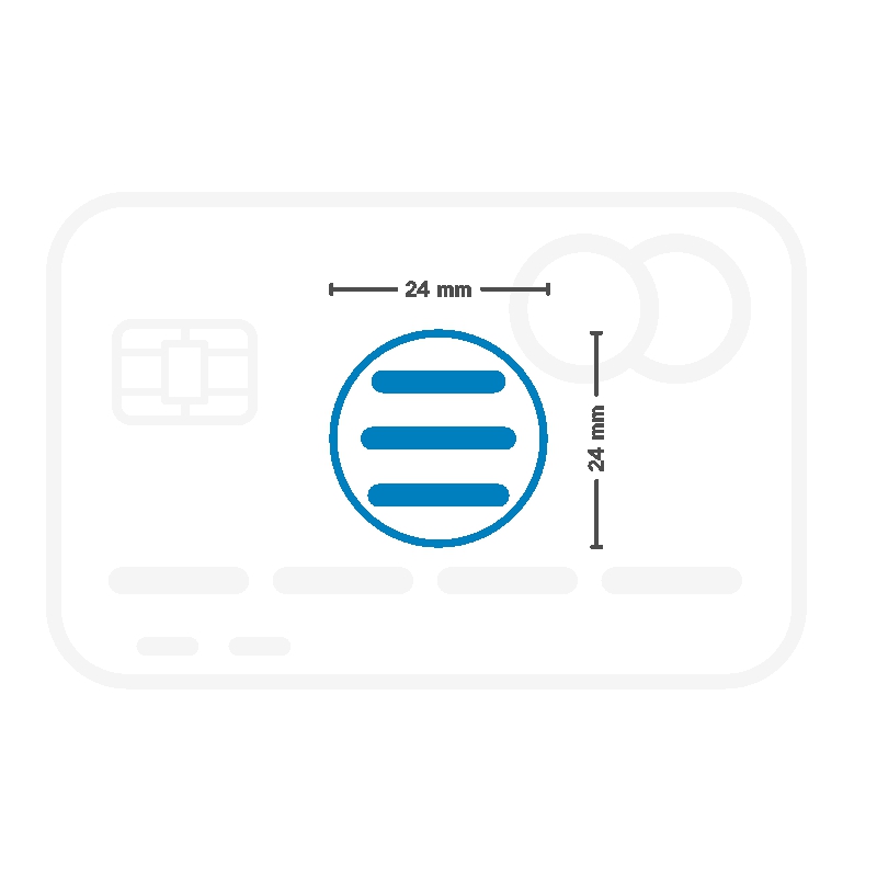 - Tamaño de impresión: 24 mm Ø. Hasta 2-3 líneas de texto o logo.