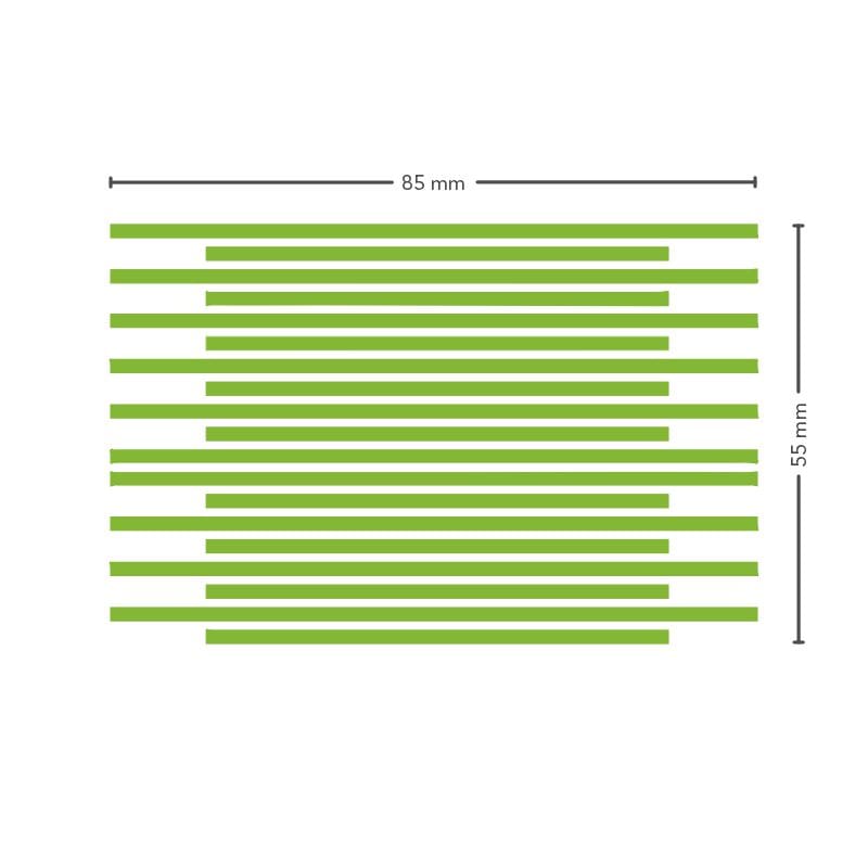 Además este tamaño es uno de los sellos de caucho más populares para empresas. Por ello genera un impresión rectangular. Este formato muy común es particularmente adecuado para incluir una dirección y un logotipo.