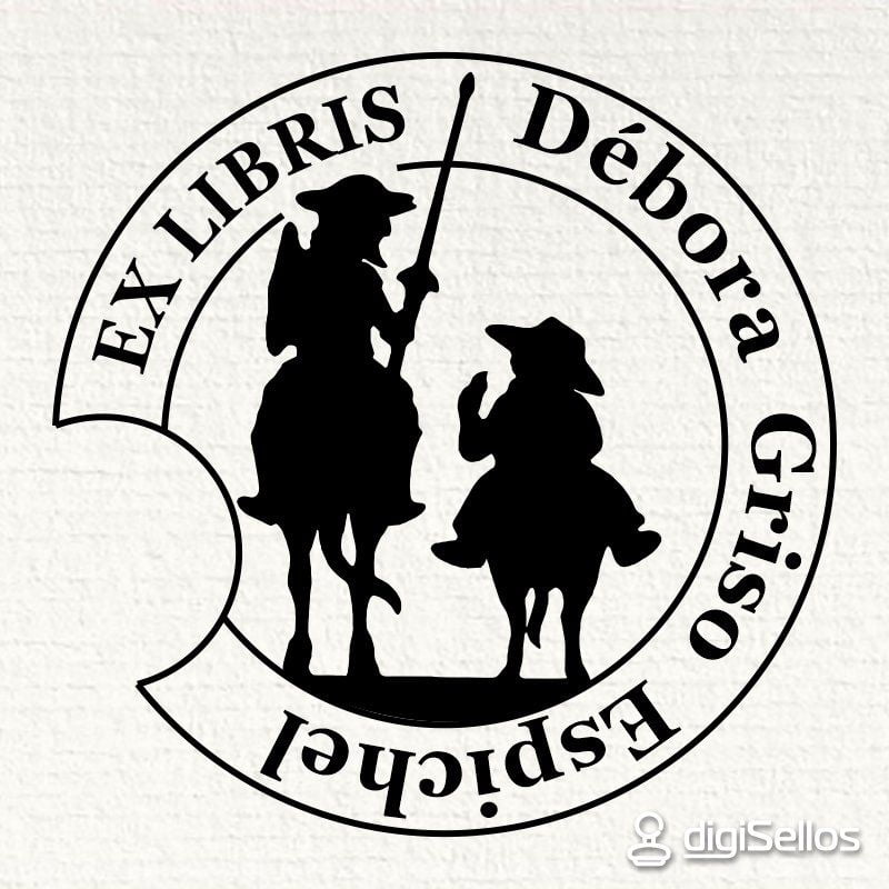 - ES ÚTIL – podrás marcar toda tu biblioteca con este sello Ex Libris Don Quijote y Sancho Panza. Seguro que no vuelves a perder un solo libro más ya que llevará siempre tu marca personal. Si lo deseas, puedes añadir el tampon de tinta en el color que desees para usar este sello. Encontrarás una amplia gama de tipos, medidas y colores en el apartado TAMPONES Y TINTAS para sellos.